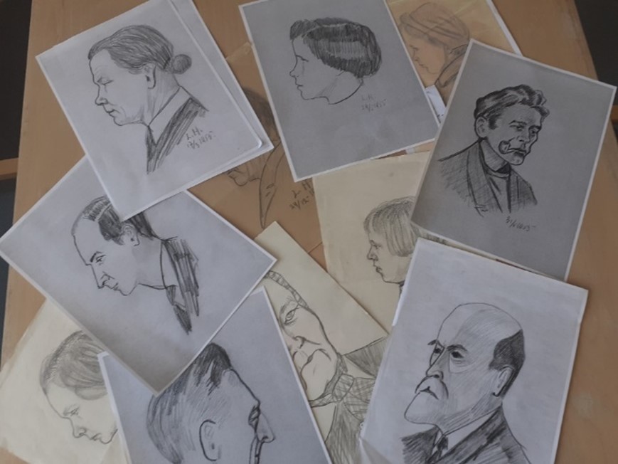 Naapureita ja kyläläisiä -näyttely koostuu yli sadasta Lauri Hakalehdon tekemästä lyijykynäpiirroksesta.